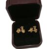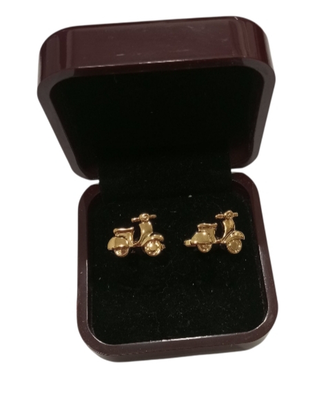 Son unos Gemelos de acero dorados con la figura de unas vespas.